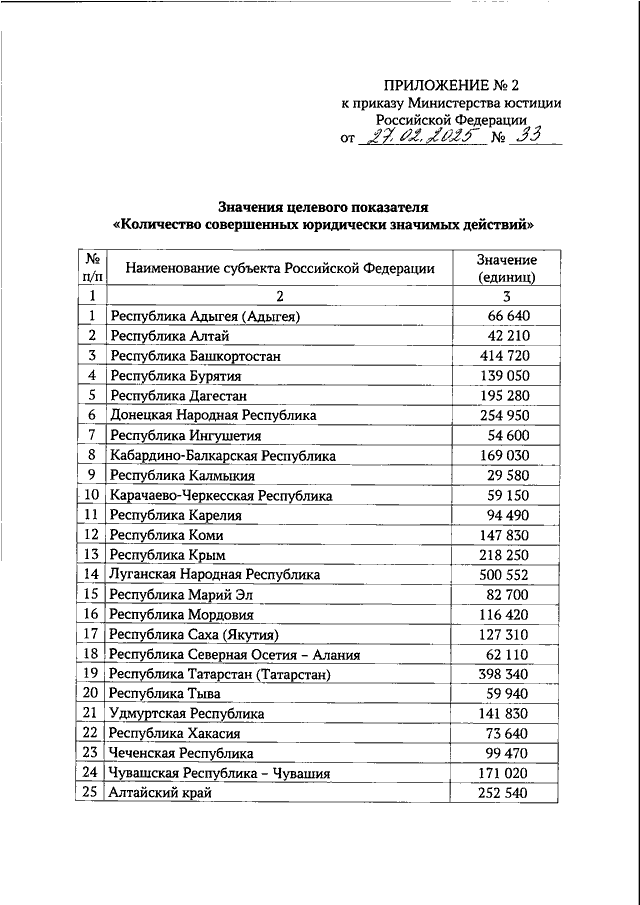 ПРИКАЗ Минюста РФ от 27.02.2025 N 33