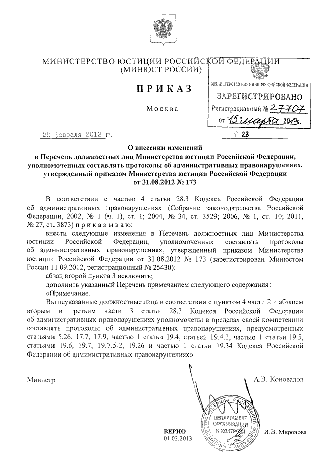 ПРИКАЗ Минюста РФ от 28.02.2013 N 23