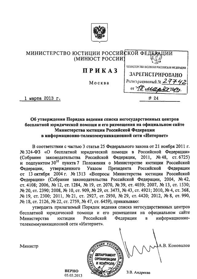 ПРИКАЗ Минюста РФ от 01.03.2013 N 24