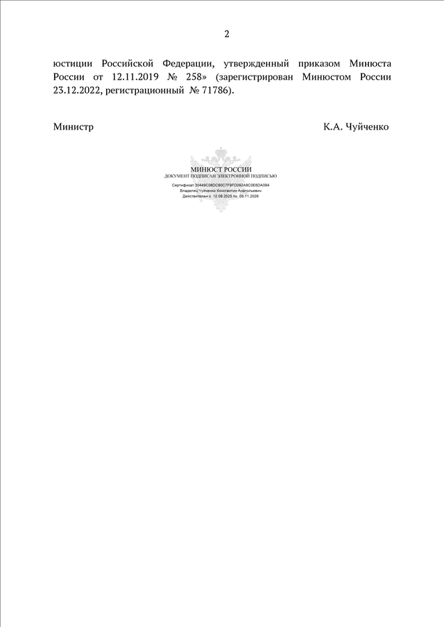 ПРИКАЗ Минюста РФ от 01.09.2025 N 219