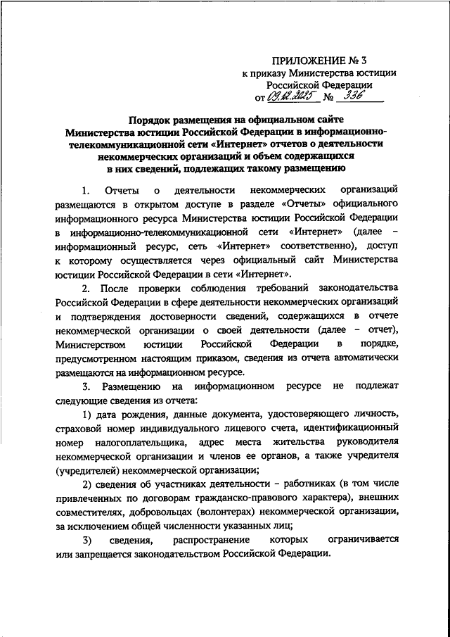 ПРИКАЗ Минюста РФ от 09.12.2025 N 336