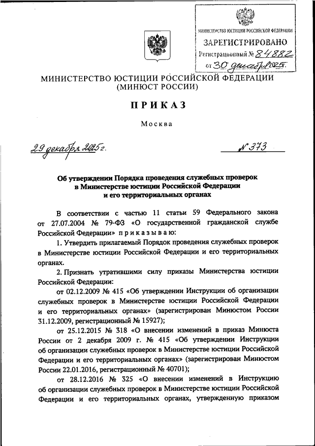 ПРИКАЗ Минюста РФ от 29.12.2025 N 373