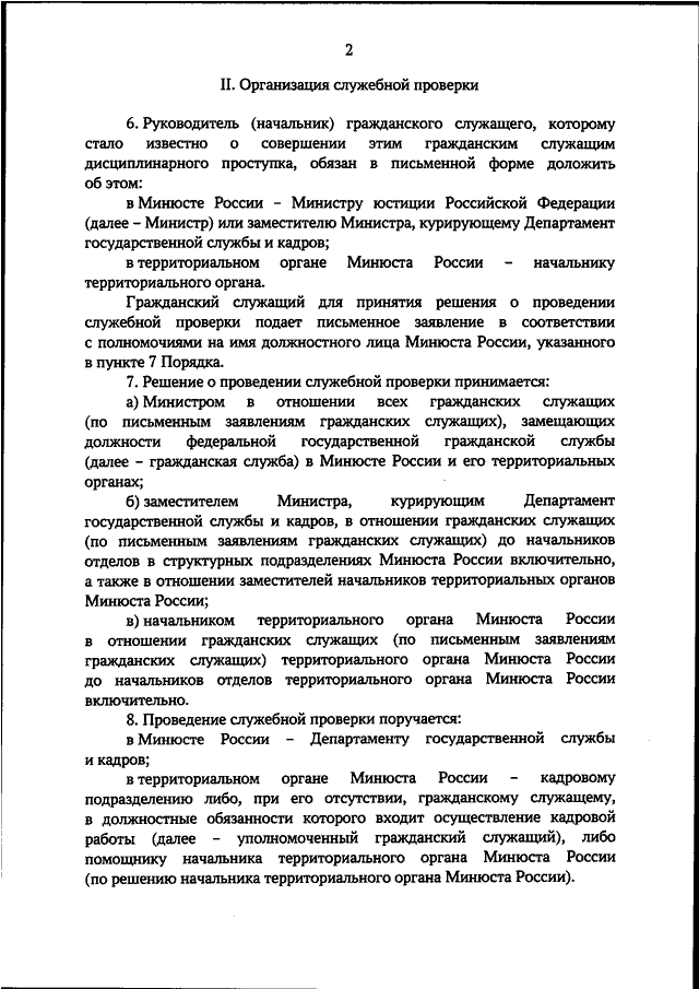 "ОБ УТВЕРЖДЕНИИ ПОРЯДКА ПРОВЕДЕНИЯ СЛУЖЕБНЫХ ПРОВЕРОК В МИНИСТЕРСТВЕ ЮСТИЦИИ РОССИЙСКОЙ ФЕДЕРАЦИИ И ЕГО ТЕРРИТОРИАЛЬНЫХ ОРГАНАХ"