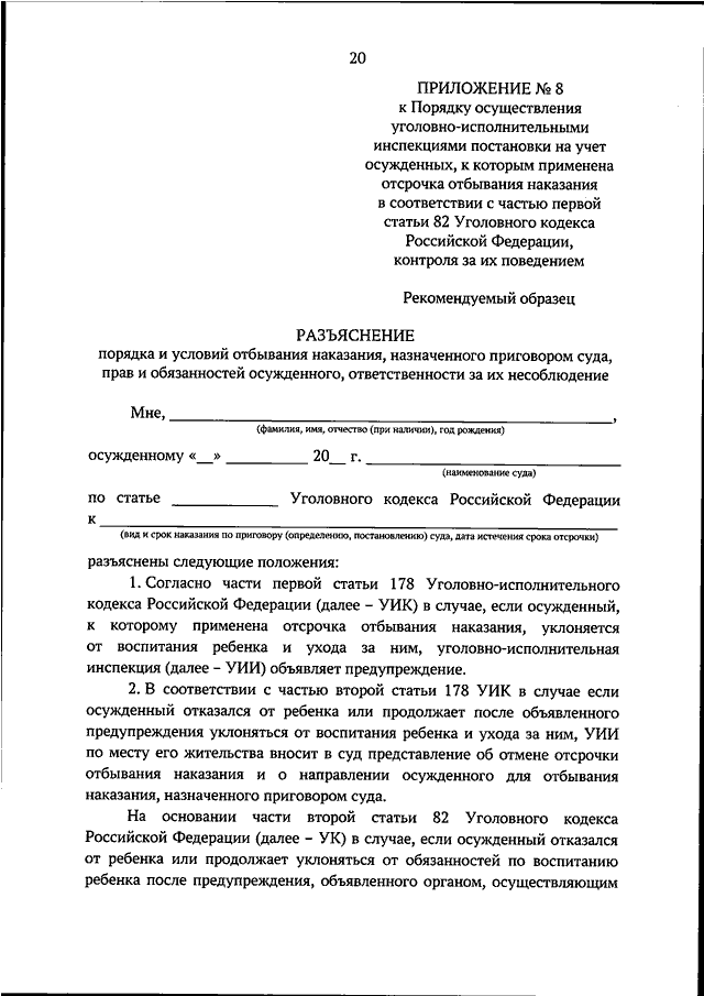 "ОБ ОРГАНИЗАЦИИ ИСПОЛНЕНИЯ НАКАЗАНИЙ В ВИДЕ ОБЯЗАТЕЛЬНЫХ РАБОТ, ЛИШЕНИЯ ПРАВА ЗАНИМАТЬ ОПРЕДЕЛЕННЫЕ ДОЛЖНОСТИ ИЛИ ЗАНИМАТЬСЯ ОПРЕДЕЛЕННОЙ ДЕЯТЕЛЬНОСТЬЮ, ИСПРАВИТЕЛЬНЫХ РАБОТ, КОНТРОЛЯ ЗА ПОВЕДЕНИЕМ ОСУЖДЕННЫХ, К КОТОРЫМ ПРИМЕНЕНА ОТСРОЧКА ОТБЫВАНИЯ НАКАЗАНИЯ, УСЛОВНО ОСУЖДЕННЫХ"