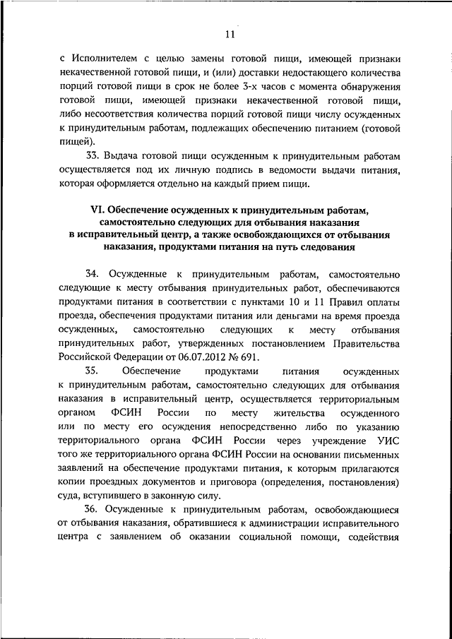 "ОБ УТВЕРЖДЕНИИ ПОРЯДКА ОБЕСПЕЧЕНИЯ ОСУЖДЕННЫХ К ПРИНУДИТЕЛЬНЫМ РАБОТАМ ПРОДУКТАМИ ПИТАНИЯ ИЛИ ПИТАНИЕМ"