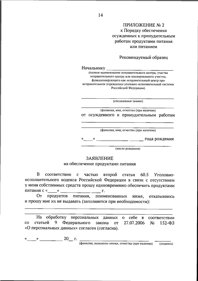 "ОБ УТВЕРЖДЕНИИ ПОРЯДКА ОБЕСПЕЧЕНИЯ ОСУЖДЕННЫХ К ПРИНУДИТЕЛЬНЫМ РАБОТАМ ПРОДУКТАМИ ПИТАНИЯ ИЛИ ПИТАНИЕМ"