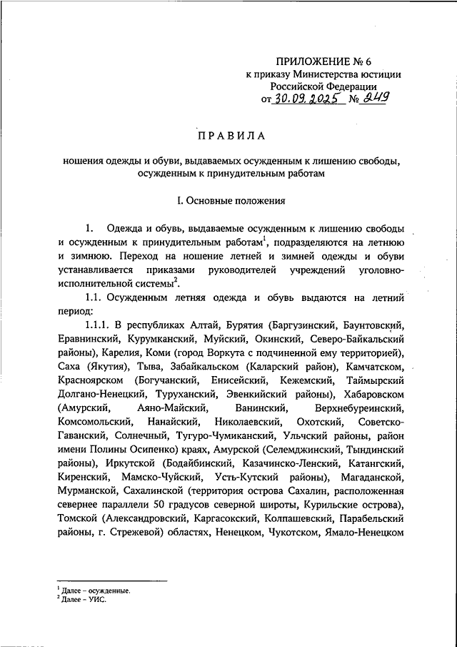 ПРИКАЗ Минюста РФ от 30.09.2025 N 249