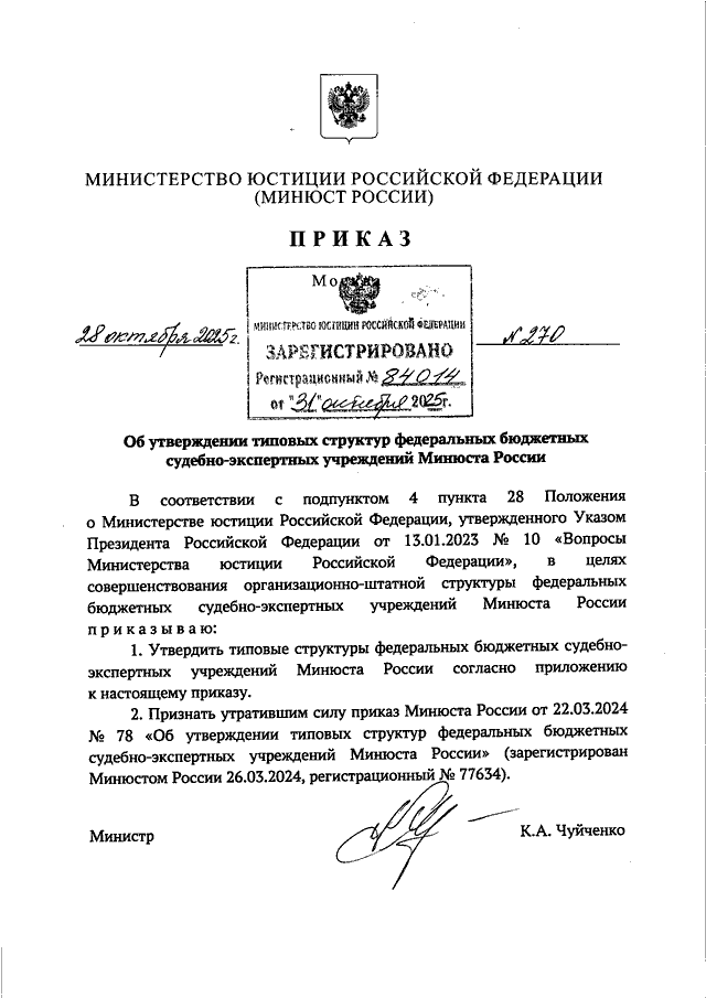 ПРИКАЗ Минюста РФ от 28.10.2025 N 270