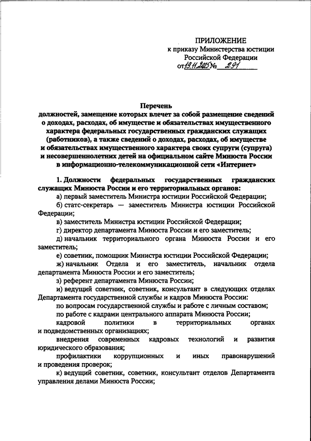 ПРИКАЗ Минюста РФ от 19.11.2025 N 291