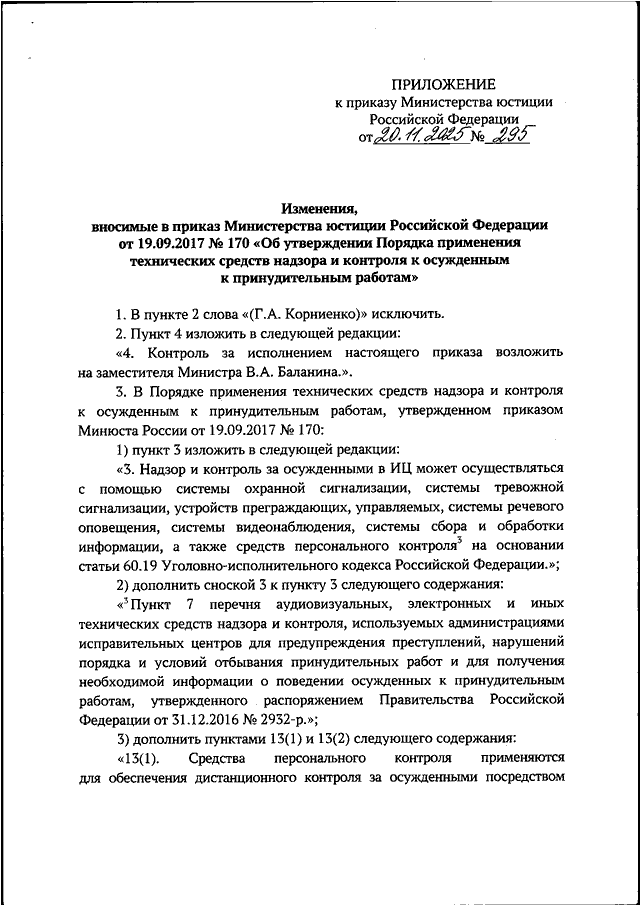 ПРИКАЗ Минюста РФ от 20.11.2025 N 295