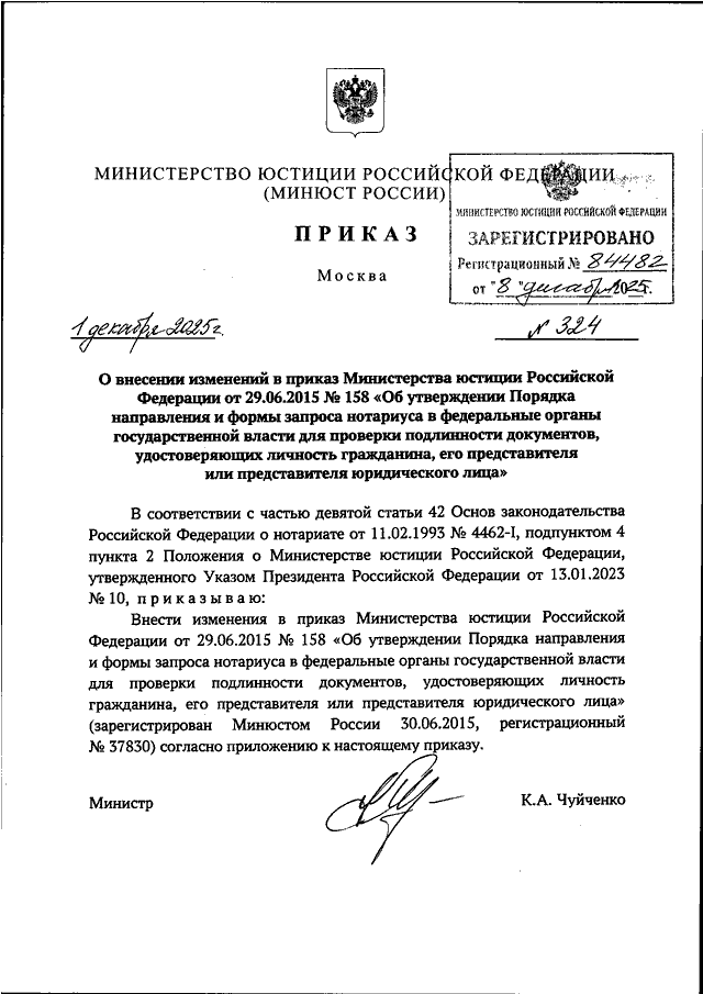 ПРИКАЗ Минюста РФ от 01.12.2025 N 324