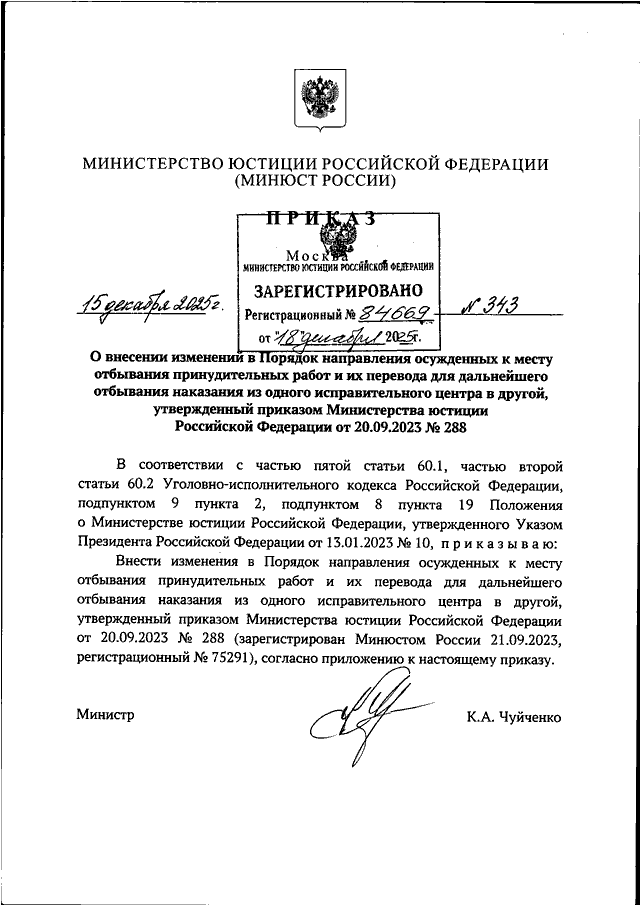 ПРИКАЗ Минюста РФ от 15.12.2025 N 343