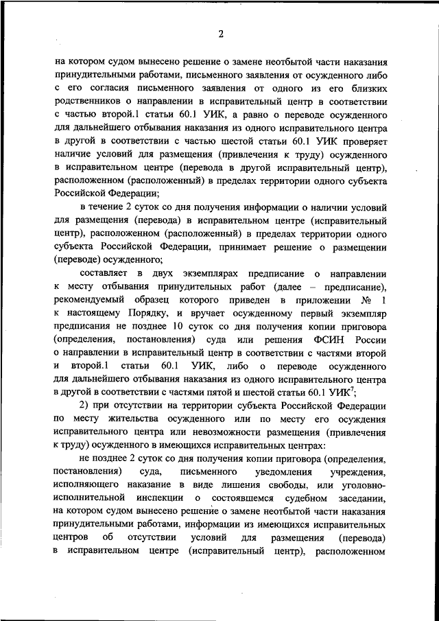 "О ВНЕСЕНИИ ИЗМЕНЕНИЙ В ПОРЯДОК НАПРАВЛЕНИЯ ОСУЖДЕННЫХ К МЕСТУ