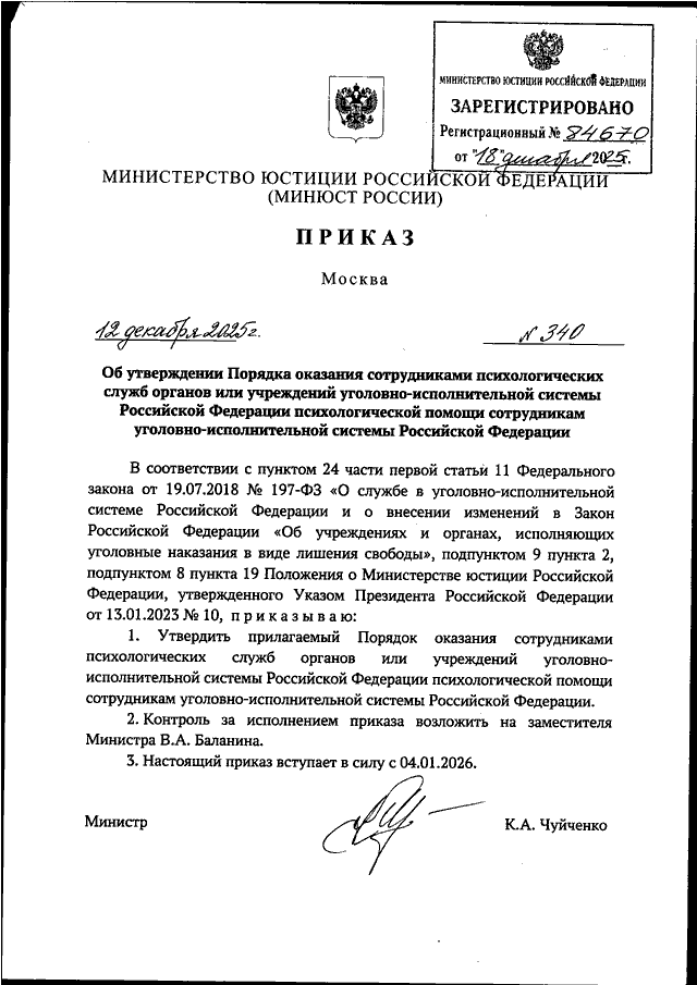 ПРИКАЗ Минюста РФ от 12.12.2025 N 340