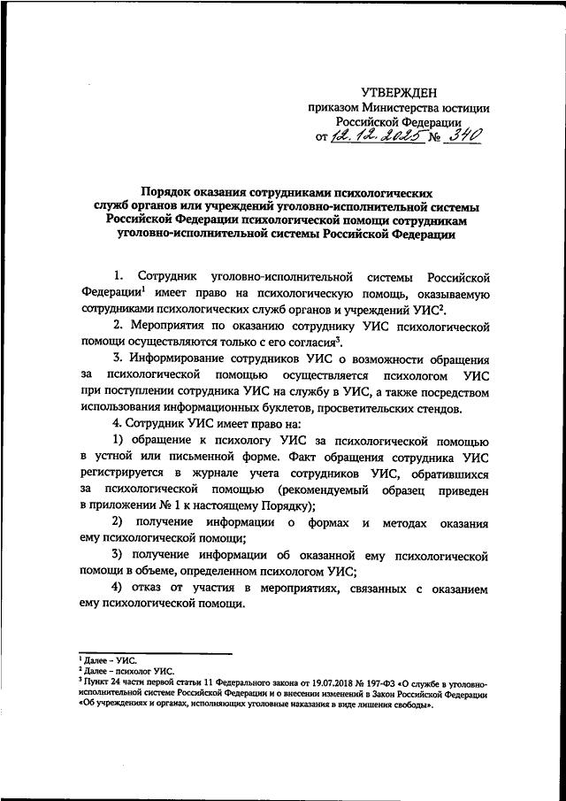 ПРИКАЗ Минюста РФ от 12.12.2025 N 340
