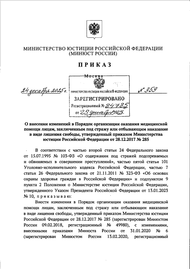 ПРИКАЗ Минюста РФ от 24.12.2025 N 359