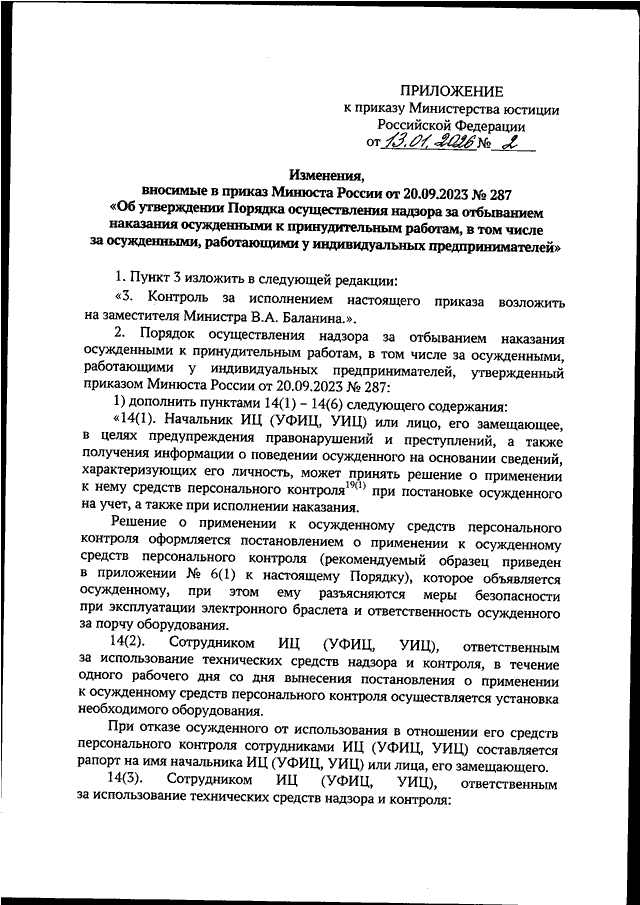 ПРИКАЗ Минюста РФ от 13.01.2026 N 2