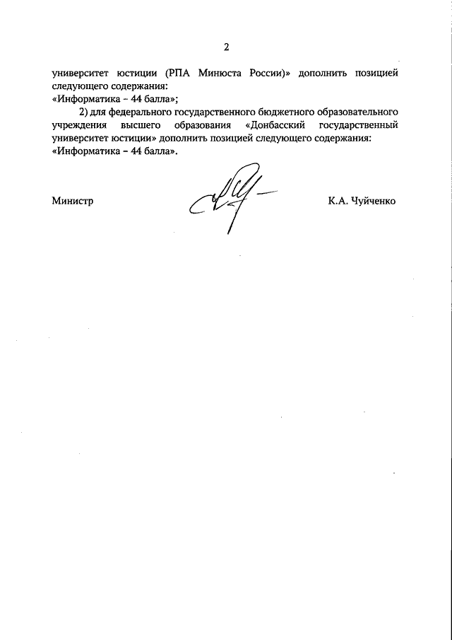 "О ВНЕСЕНИИ ИЗМЕНЕНИЙ В МИНИМАЛЬНОЕ КОЛИЧЕСТВО БАЛЛОВ ЕДИНОГО