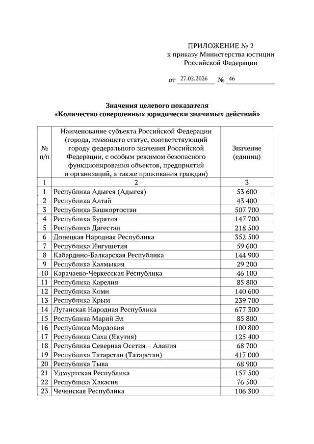 ПРИКАЗ Минюста РФ от 27.02.2026 N 46