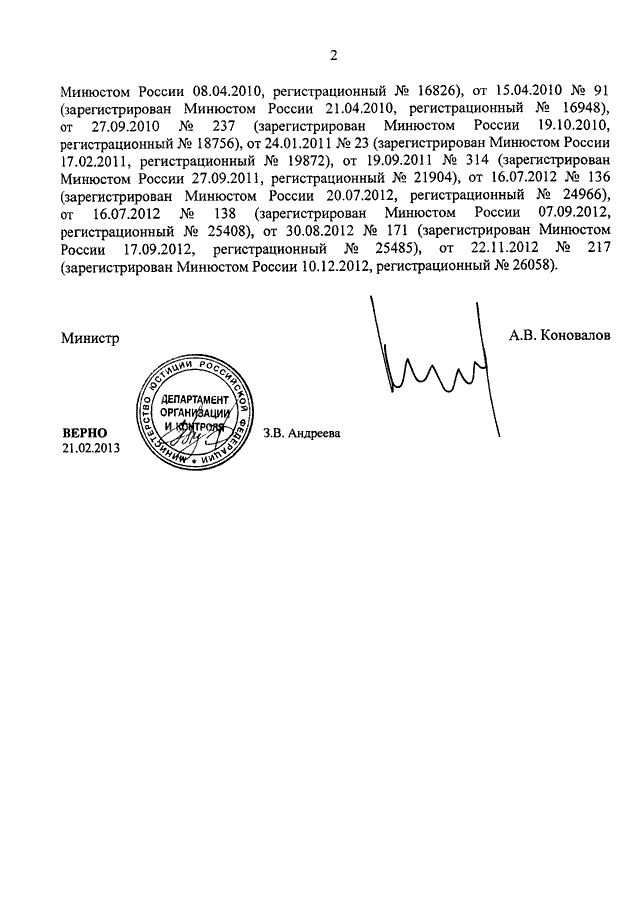 ПРИКАЗ Минюста РФ от 20.02.2013 N 20