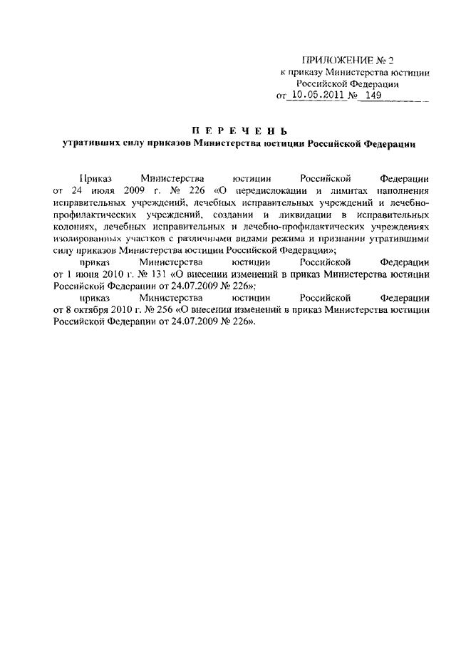 ПРИКАЗ Минюста РФ от 10.05.2011 N 149