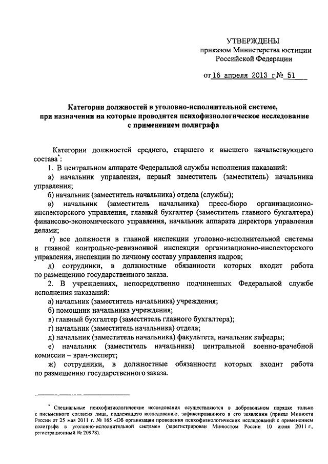 ПРИКАЗ Минюста РФ от 16.04.2013 N 51