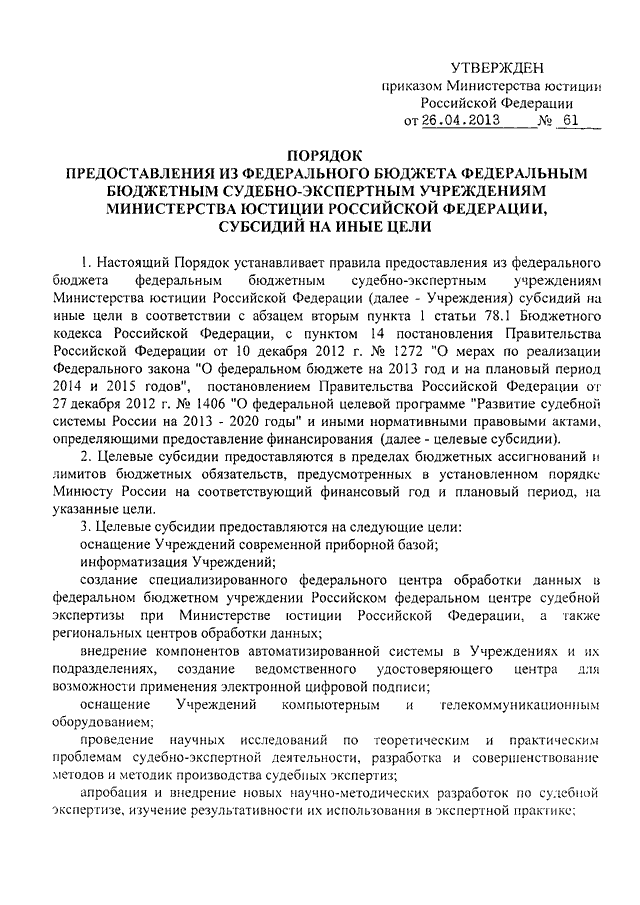 ПРИКАЗ Минюста РФ от 26.04.2013 N 61