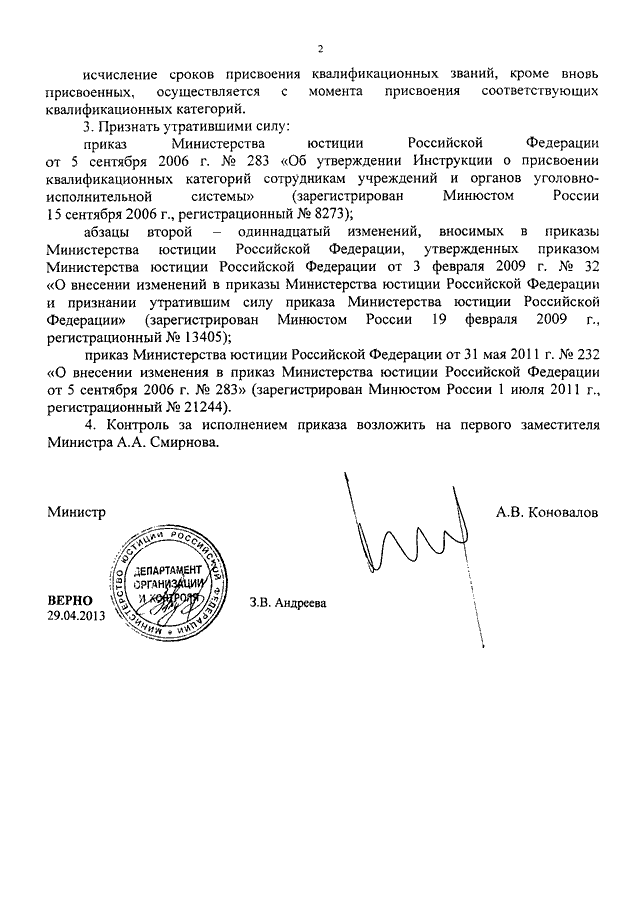 ПРИКАЗ Минюста РФ от 26.04.2013 N 62