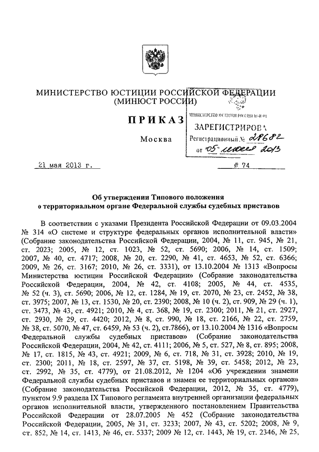 ПРИКАЗ Минюста РФ от 21.05.2013 N 74