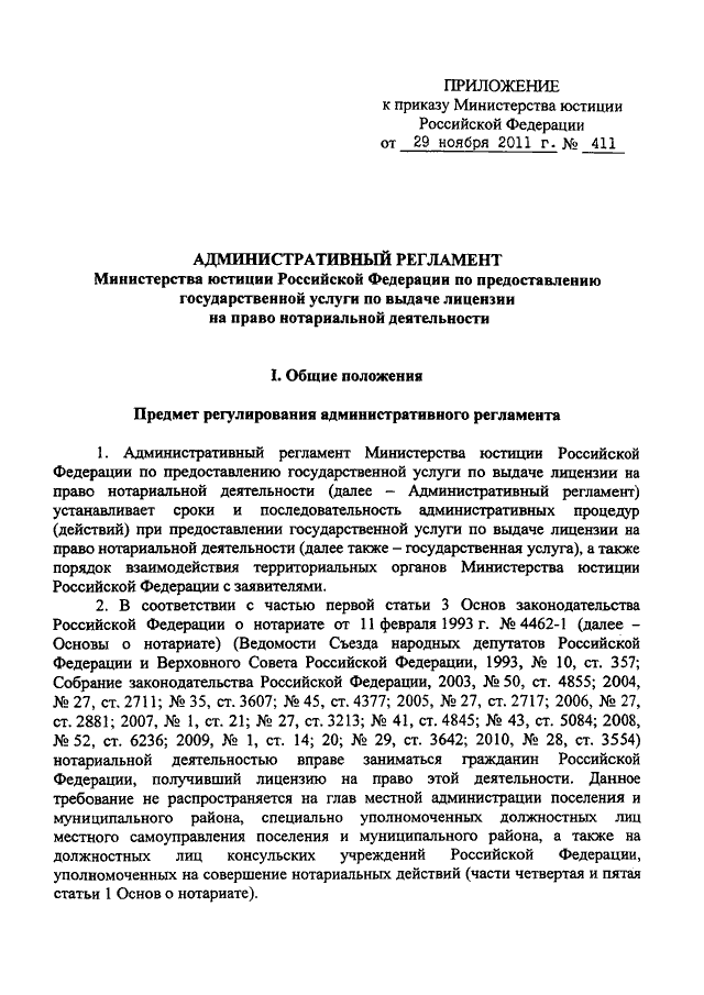 ПРИКАЗ Минюста РФ от 29.11.2011 N 411