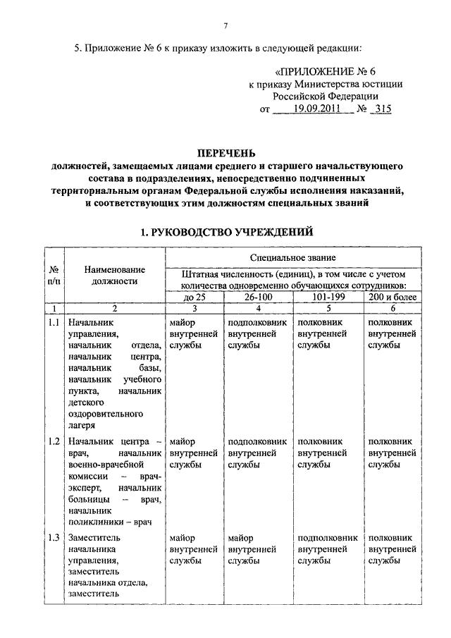 "О ВНЕСЕНИИ ИЗМЕНЕНИЙ В ПРИКАЗ МИНИСТЕРСТВА ЮСТИЦИИ РОССИЙСКОЙ ФЕДЕРАЦИИ ОТ 19 СЕНТЯБРЯ 2011 Г. N 315 "ОБ УТВЕРЖДЕНИИ ПЕРЕЧНЕЙ ДОЛЖНОСТЕЙ, ЗАМЕЩАЕМЫХ ЛИЦАМИ РЯДОВОГО СОСТАВА, МЛАДШЕГО, СРЕДНЕГО И СТАРШЕГО НАЧАЛЬСТВУЮЩЕГО СОСТАВА В УГОЛОВНО - ИСПОЛНИТЕЛЬНОЙ СИСТЕМЕ, И СООТВЕТСТВУЮЩИХ ЭТИМ ДОЛЖНОСТЯМ СПЕЦИАЛЬНЫХ ЗВАНИЙ"