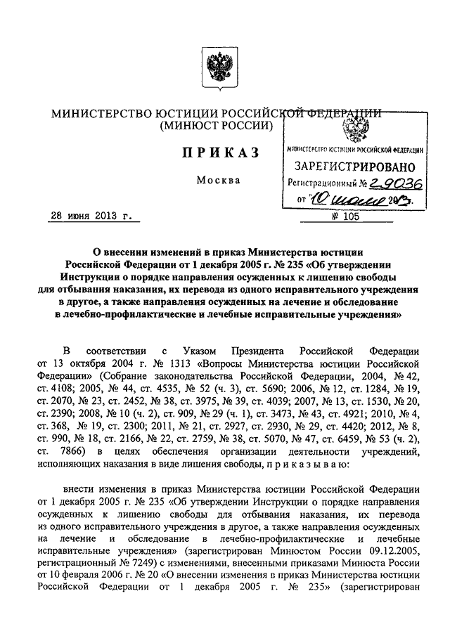 ПРИКАЗ Минюста РФ от 28.06.2013 N 105