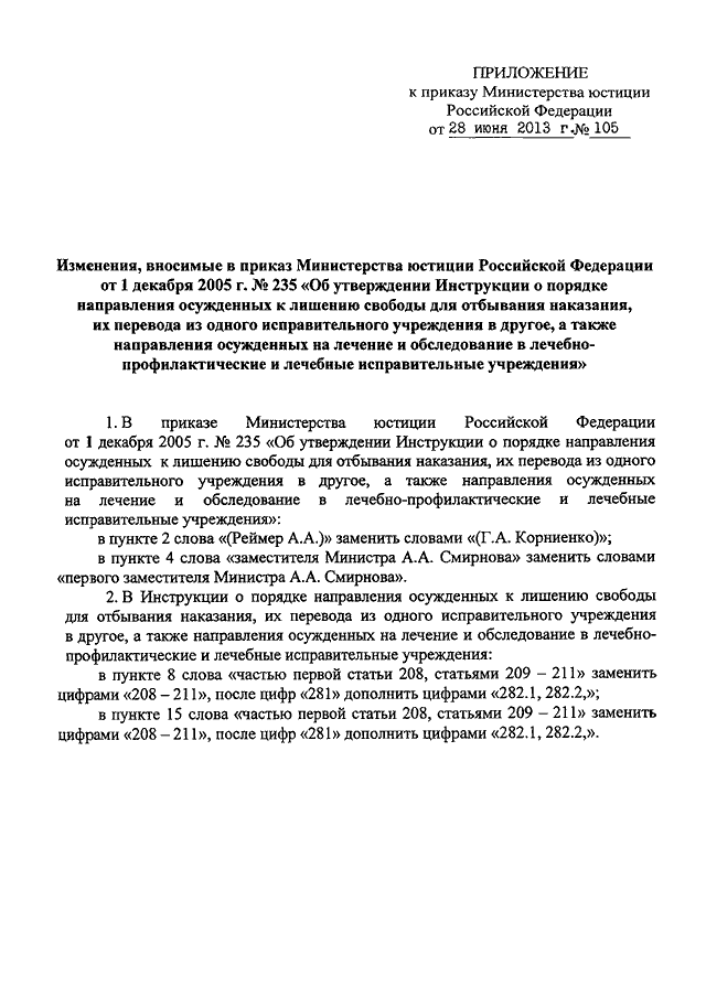 ПРИКАЗ Минюста РФ от 28.06.2013 N 105