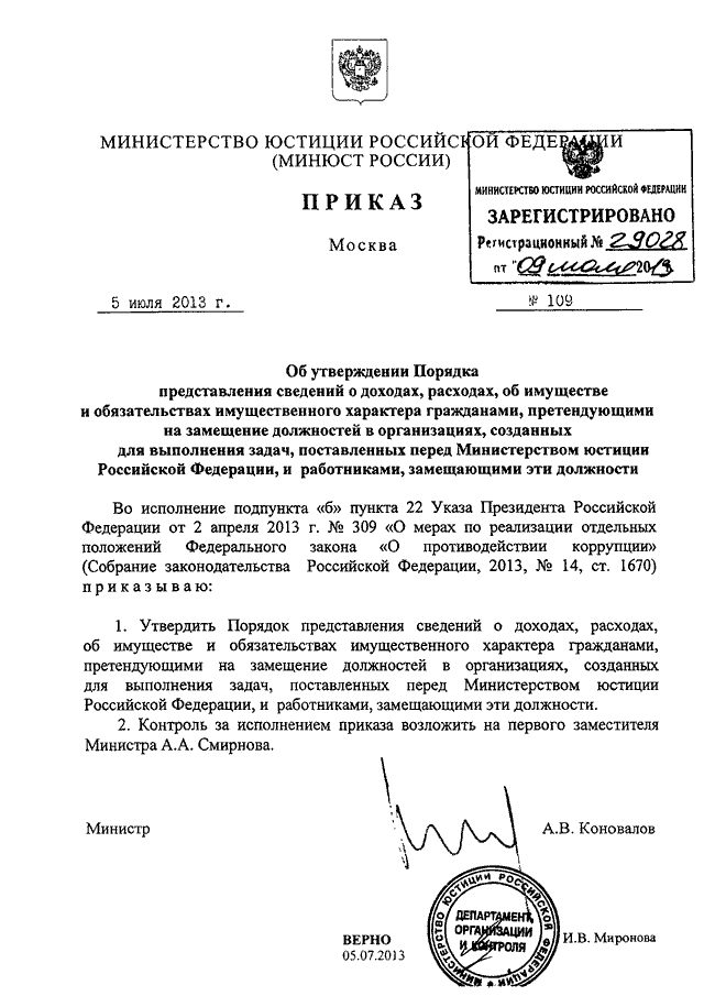ПРИКАЗ Минюста РФ от 05.07.2013 N 109