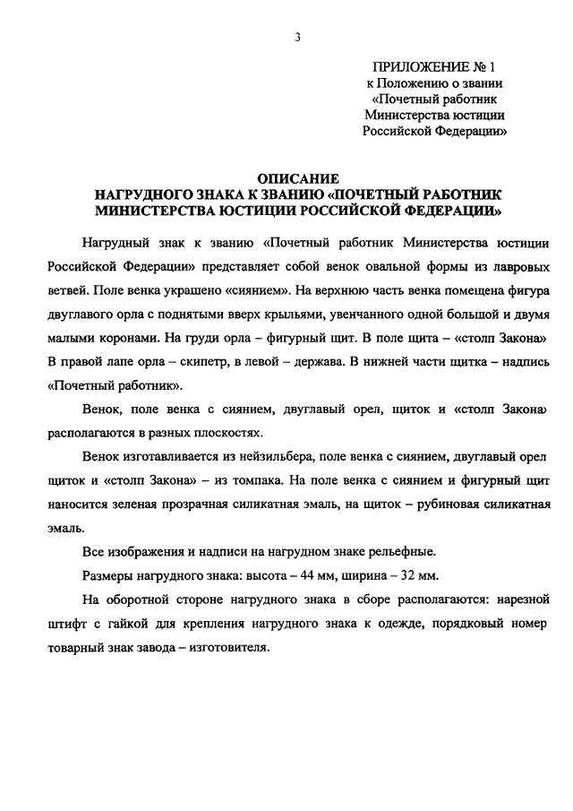"О ВЕДОМСТВЕННЫХ НАГРАДАХ МИНИСТЕРСТВА ЮСТИЦИИ РОССИЙСКОЙ ФЕДЕРАЦИИ"