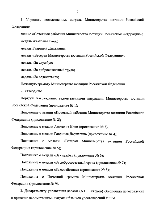 "О ВЕДОМСТВЕННЫХ НАГРАДАХ МИНИСТЕРСТВА ЮСТИЦИИ РОССИЙСКОЙ ФЕДЕРАЦИИ"