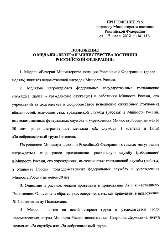 ПРИКАЗ Минюста РФ от 17.07.2013 N 116