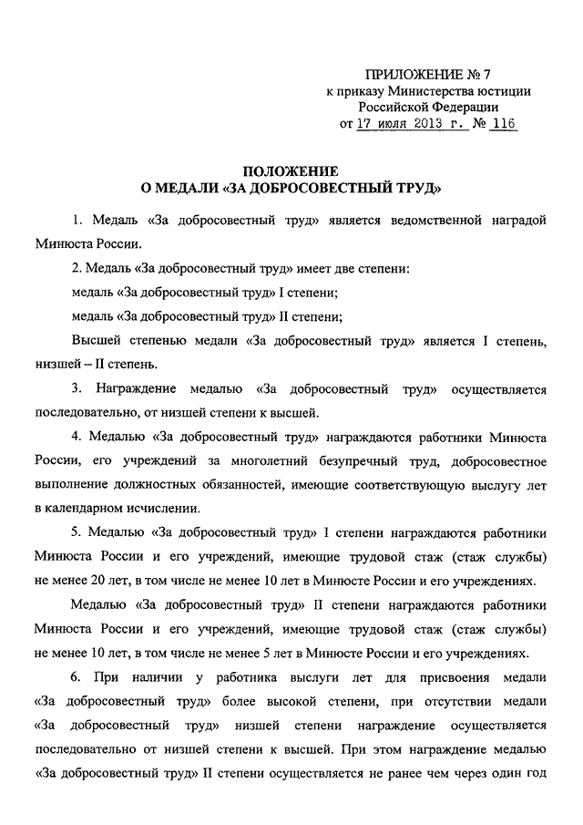 ПРИКАЗ Минюста РФ от 17.07.2013 N 116