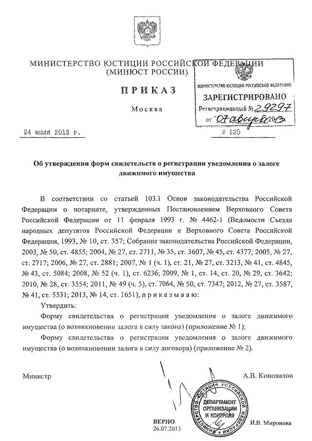 ПРИКАЗ Минюста РФ от 24.07.2013 N 125