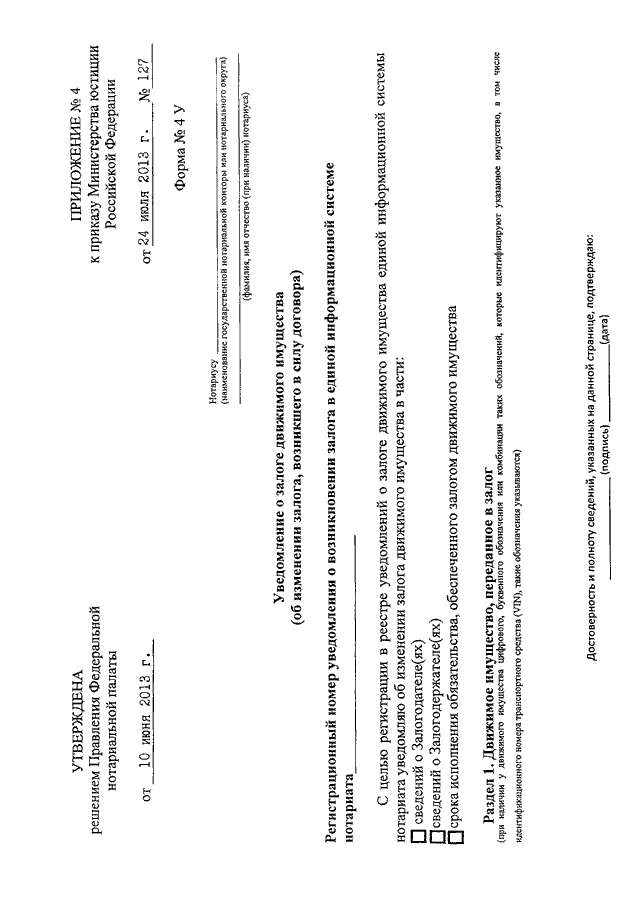 "ОБ УТВЕРЖДЕНИИ ФОРМ УВЕДОМЛЕНИЙ О ЗАЛОГЕ ДВИЖИМОГО ИМУЩЕСТВА"
