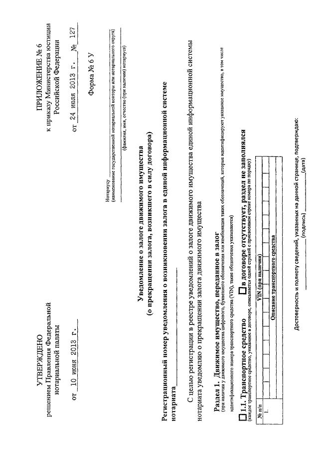 "ОБ УТВЕРЖДЕНИИ ФОРМ УВЕДОМЛЕНИЙ О ЗАЛОГЕ ДВИЖИМОГО ИМУЩЕСТВА"
