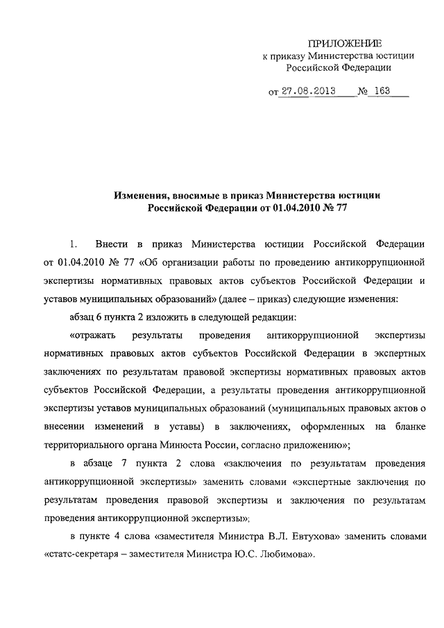 ПРИКАЗ Минюста РФ от 27.08.2013 N 163