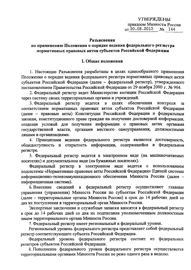 ПРИКАЗ Минюста РФ от 20.08.2013 N 144