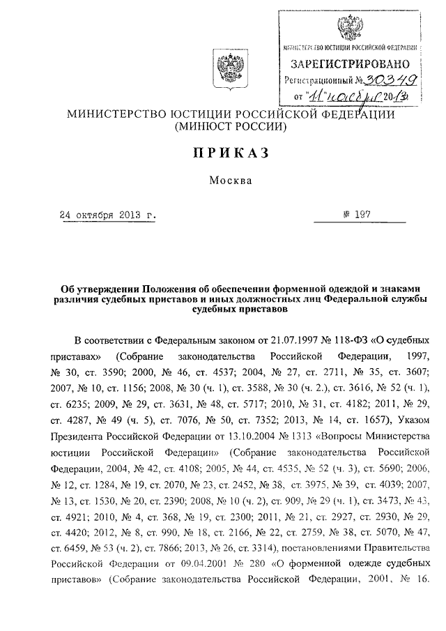 ПРИКАЗ Минюста РФ от 24.10.2013 N 197