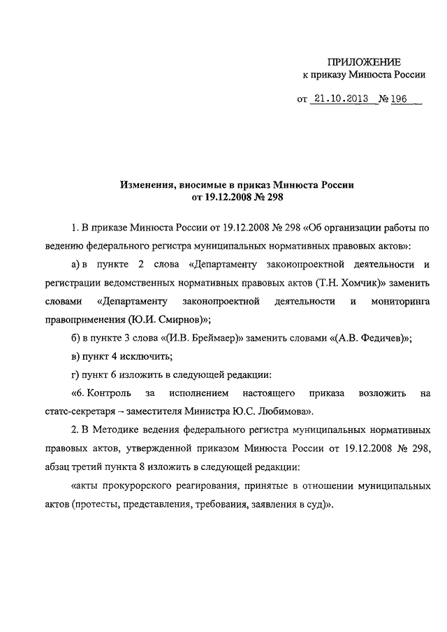 ПРИКАЗ Минюста РФ от 21.10.2013 N 196