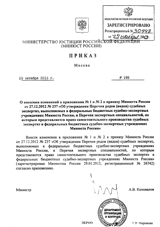 ПРИКАЗ Минюста РФ от 29.10.2013 N 199