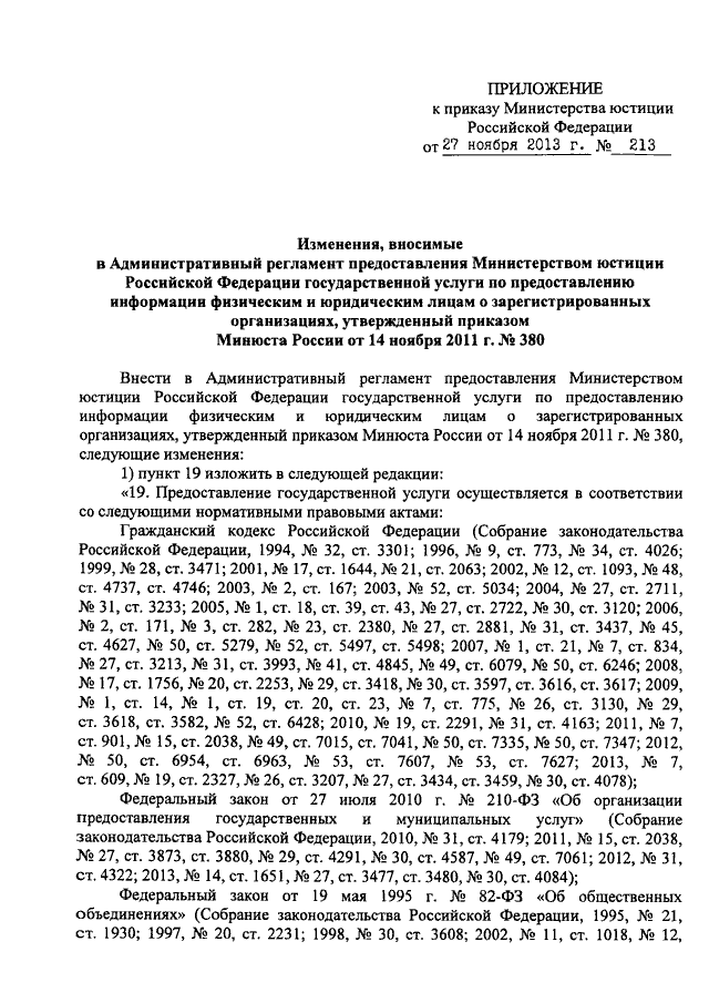 ПРИКАЗ Минюста РФ от 27.11.2013 N 213