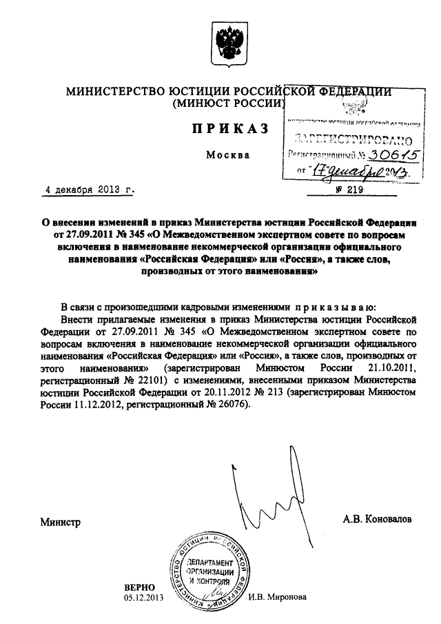 ПРИКАЗ Минюста РФ от 04.12.2013 N 219