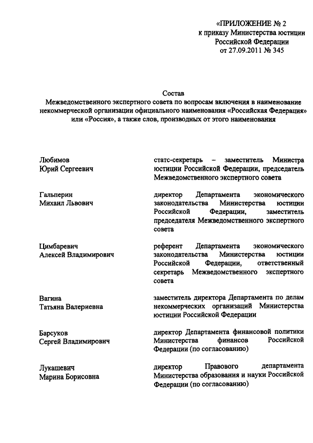 ФЕДЕРАЦИИ ОТ 27.09.2011 N 345 "О МЕЖВЕДОМСТВЕННОМ ЭКСПЕРТНОМ