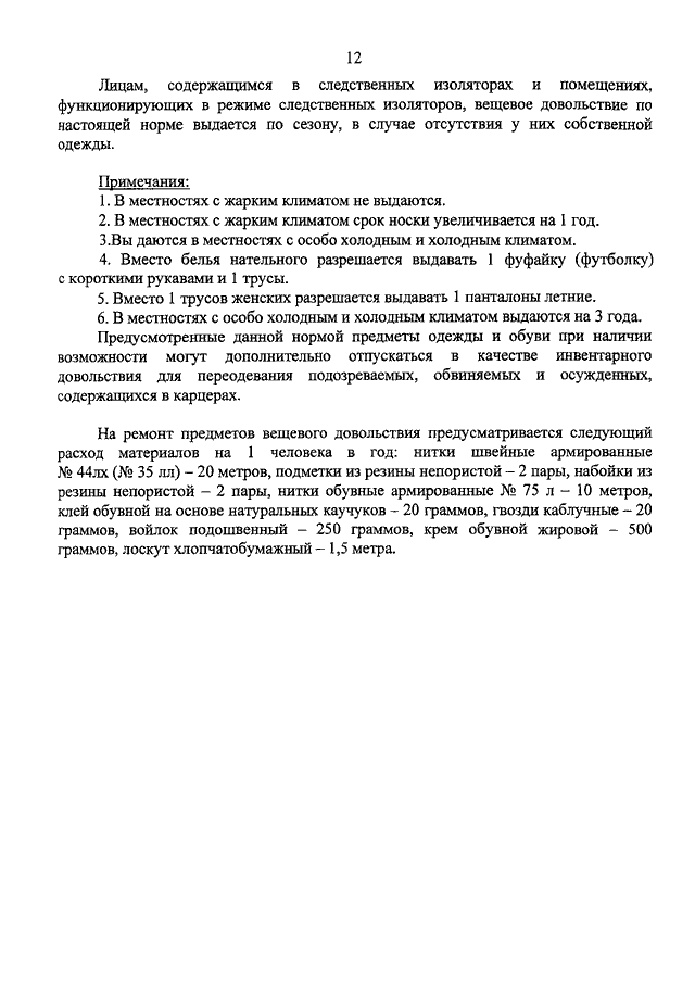 "ОБ УТВЕРЖДЕНИИ НОРМ ВЕЩЕВОГО ДОВОЛЬСТВИЯ ОСУЖДЕННЫХ К ЛИШЕНИЮ СВОБОДЫ И ЛИЦ, СОДЕРЖАЩИХСЯ В СЛЕДСТВЕННЫХ ИЗОЛЯТОРАХ"